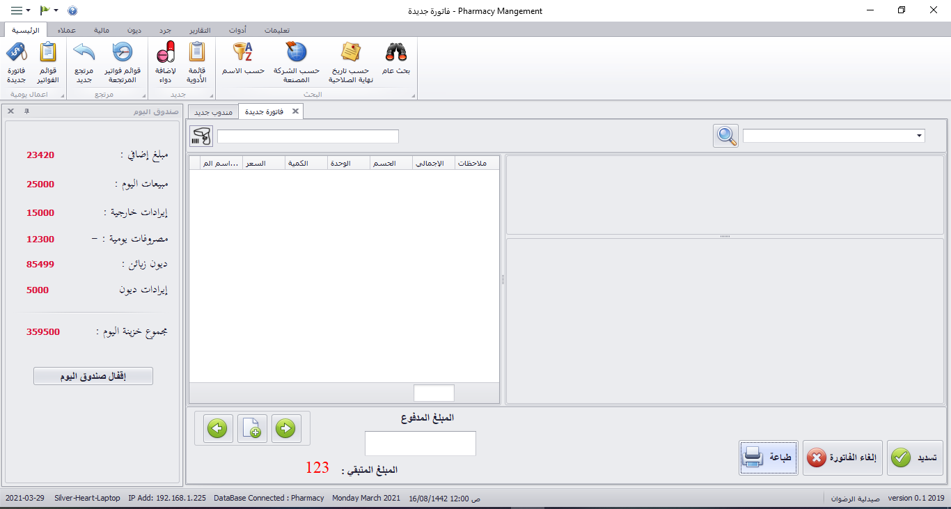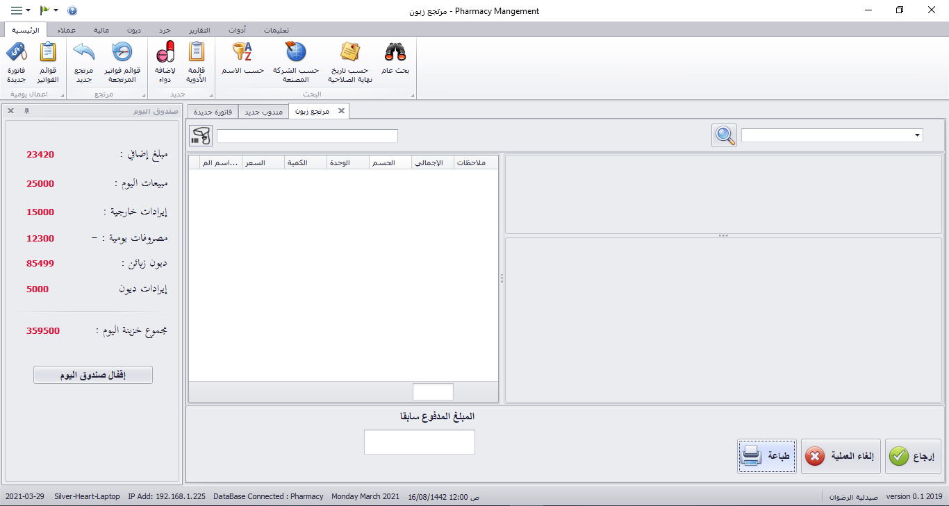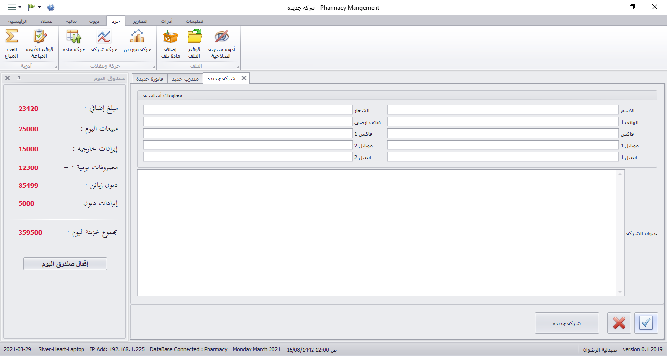 Pharmacy management program From buying and selling to customers or companies Statements, returns for medicines and suppliers Detailed reports of all cash transactions